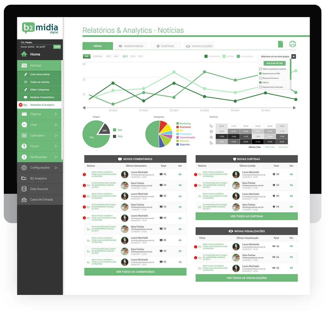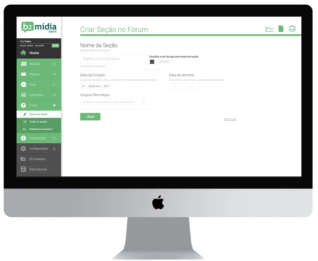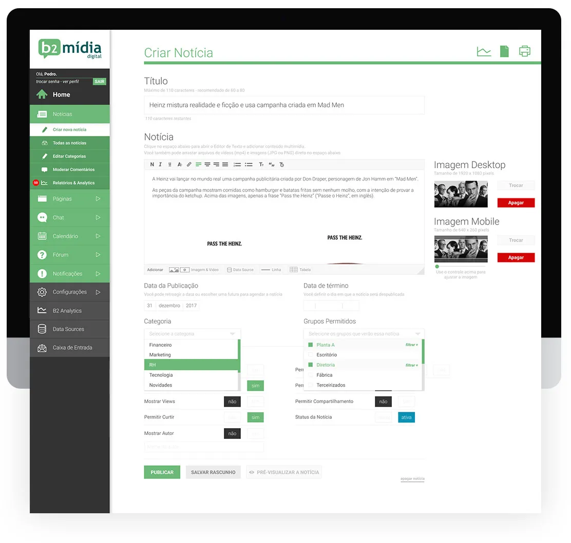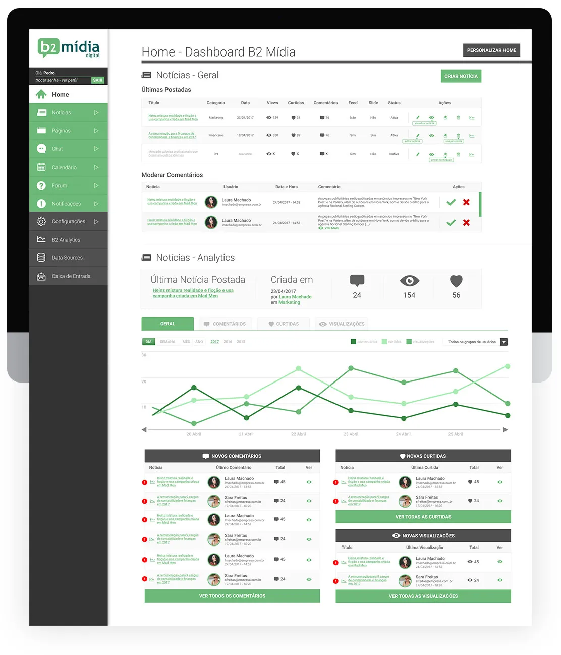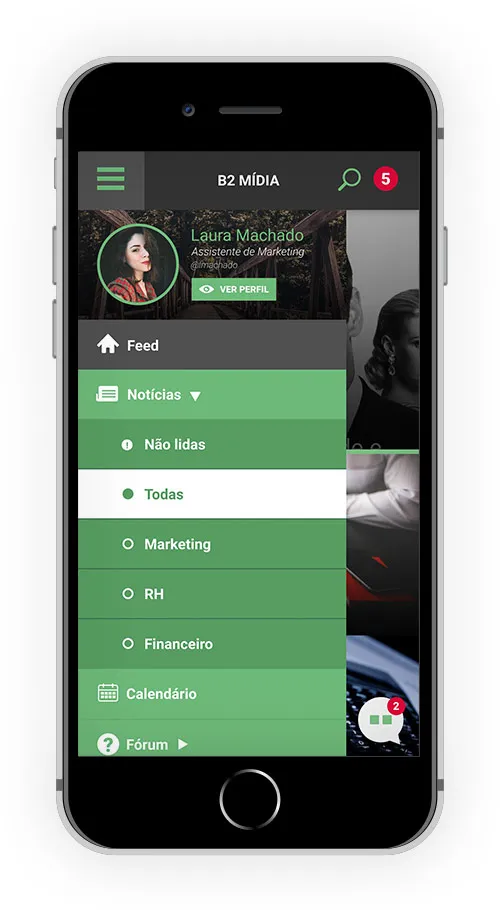 Pensado como uma ferramenta social para empresas, o aplicativo B2 Mídia segue a tendência do Workspace, uma espécie de Facebook interno para as companhias manterem seus colaboradores informados e integrados dentro de um ambiente próprio. O aplicativo também possui um sistema de administração onde as empresas controlam e configuram as informações que o aplicativo apresenta aos colaboradores, além de acompanharem métricas de uso e desempenho.