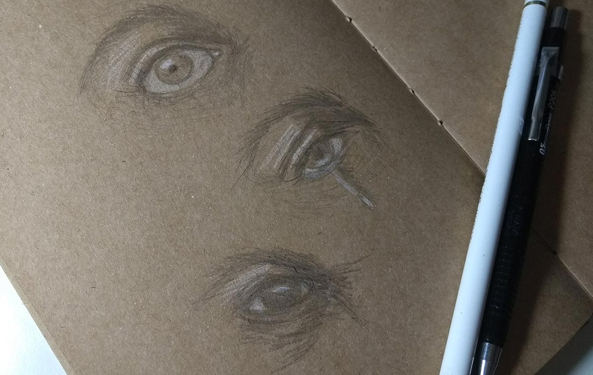 Alguns dos meus desenhos em grafite e lápis pastel. A maioria foi feita em papel Kraft (A4 e sketchbook), mas tem alguns também em papel Canson (A4).